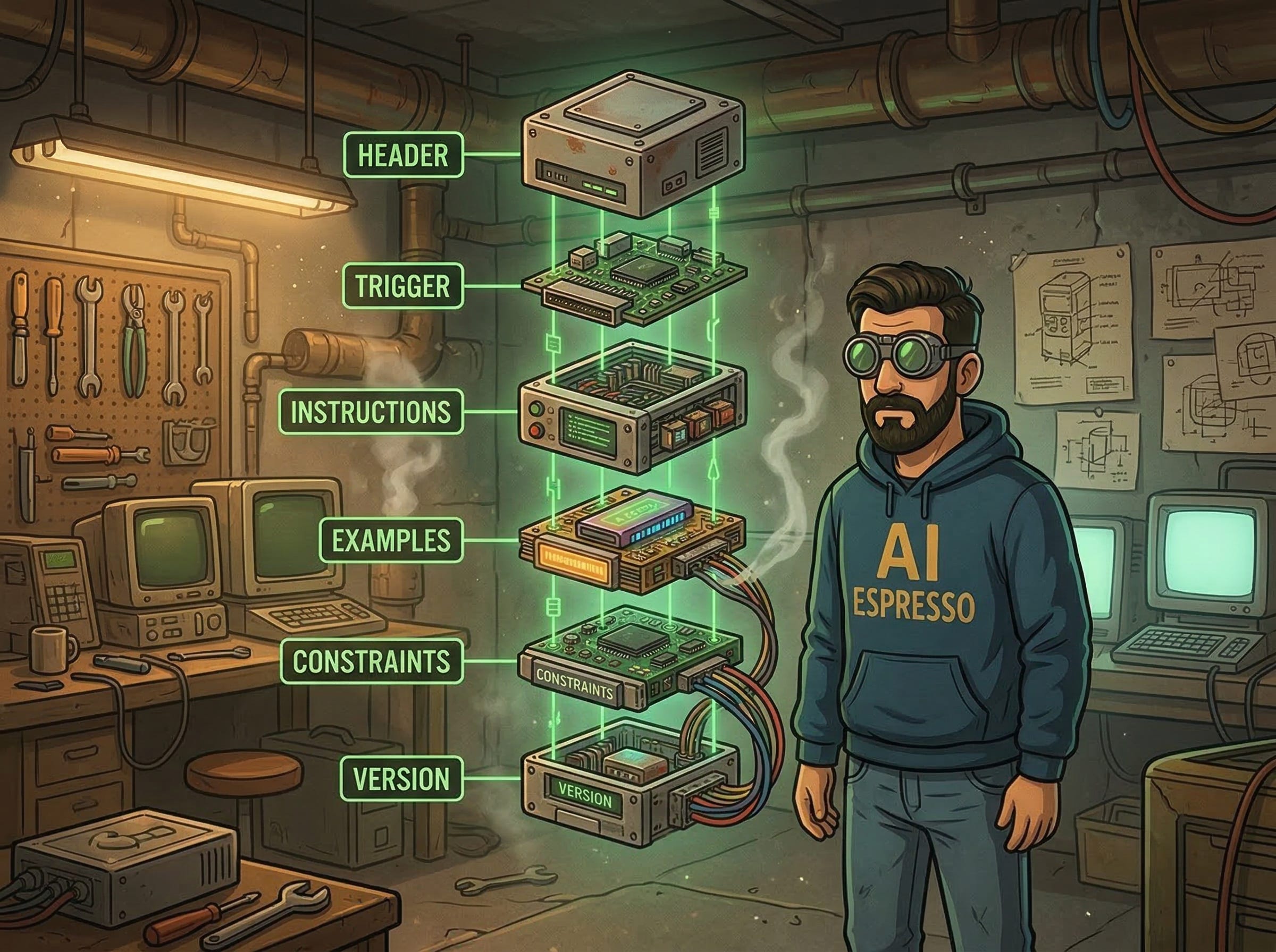 Ogni Skill che funziona ha la stessa struttura interna. Non importa se serve a scrivere newsletter, analizzare contratti, strutturare report post-call o fare l’onboarding di un nuovo cliente.